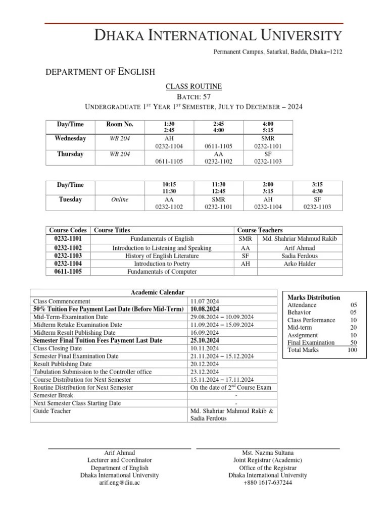 Class Routine Academic Calender Fall 2024 PDF Academic Term Academia