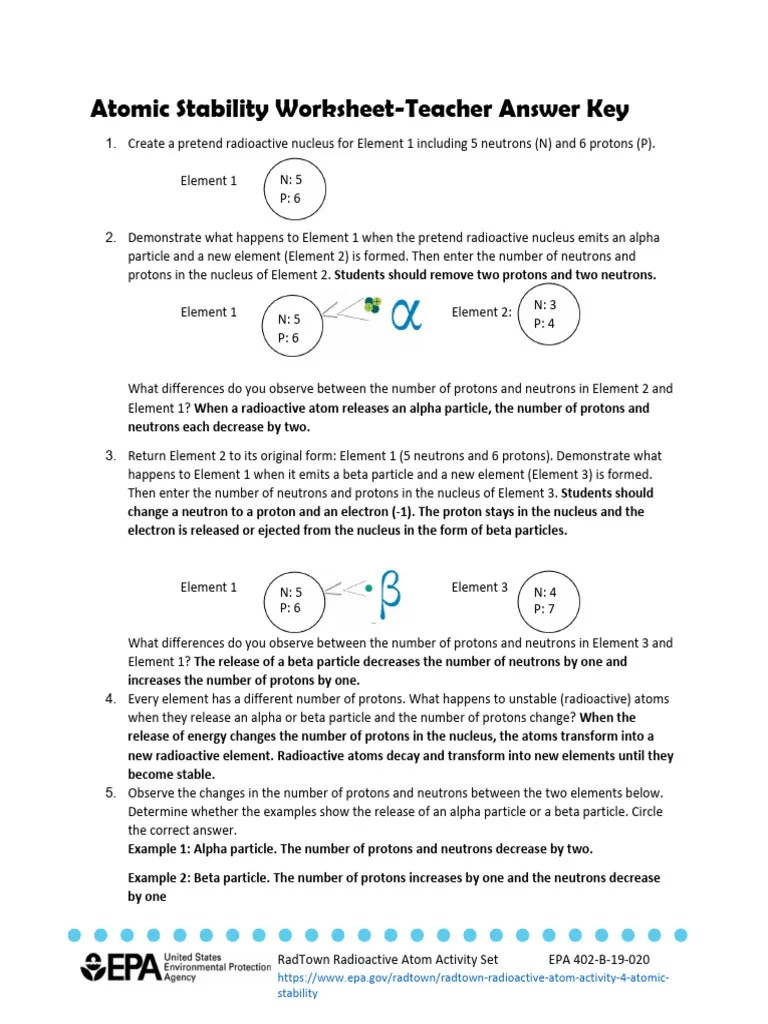 Atomic Stability Worksheet Teacher Key Ra4 PDF Proton Neutron