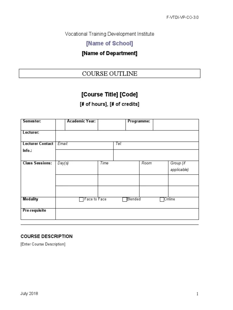 Here's a free course outline template to help course creators like you get started planning your lessons. Find out what a course outline is, how to write one step by step, and how to choose the best learning activities and assessments. How to outline a course in google docs [free template] first, you need four things to outline. Here’s a quick overview of the.