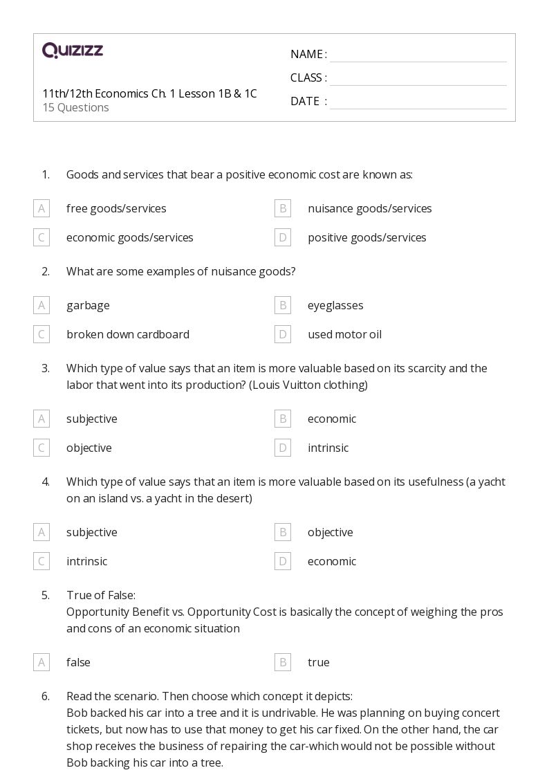 50+ economics worksheets for Grade 12 on Quizizz Free & Printable